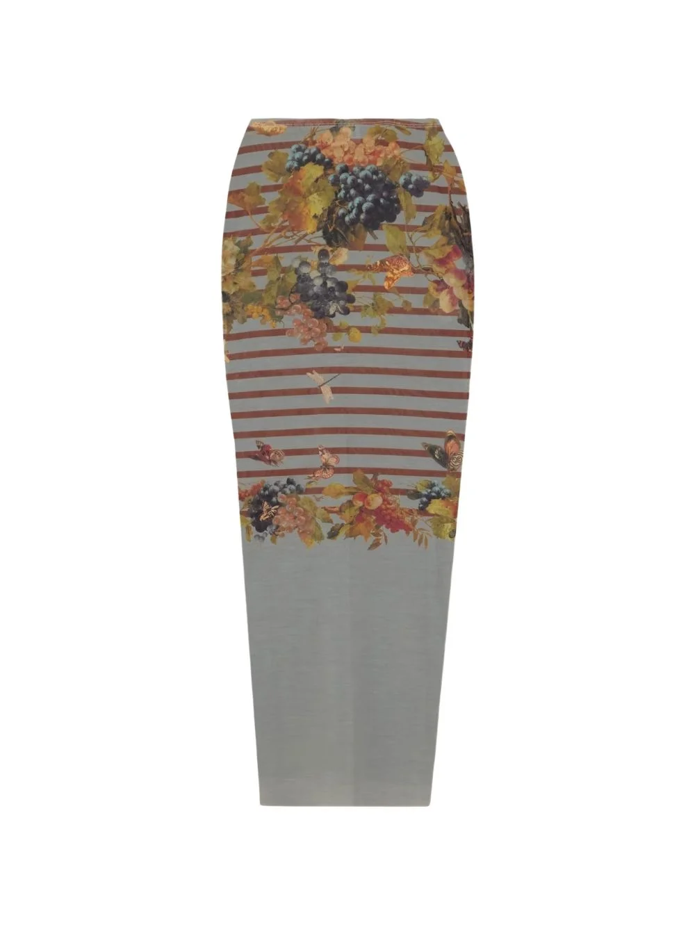 striped floral midi skirt Highlights - Grey - Floral print - Striped Imported Composition Fabric 100% Washing instructions Read Manufacturer Guidelines