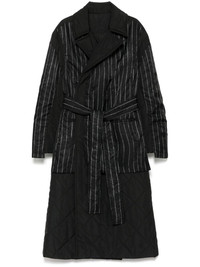 striped padded coat Highlights - Black - Front press-stud fastening - Padded design - Stripe print - Two front jetted pockets - Panelled design - Belt loops - Detachable and adjustable waist belt - Two side inset pockets - Long sleeves - Buttoned cuffs - Full lining Made in Italy Composition Lining: Polyester 100% Outer: Polyester 100% SIZE & FIT Model measurements Height 5 ft 10 in(1.77 m) Bust/Chest 31.49 in(80 cm) Hips 35.43 in(90 cm) Waist 25.19 in(64 cm) FittingInformation Designed to be unstructured, offering a loose fit throughout The tie fastening gives an adaptable and personalised fit Made from a midweight non-stretch fabric Washing instructions Machine Wash