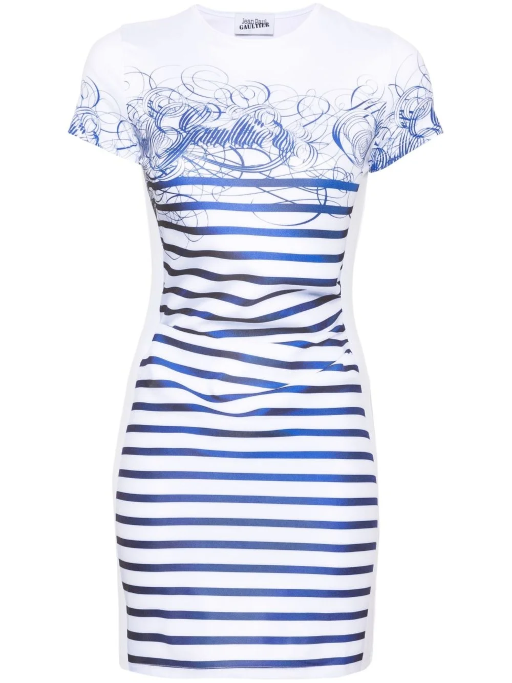 striped-print mini dress Highlights - Blue/white - Textured finish - Striped t-shirt dress print - Round neck - Short sleeves - Thigh-length - Straight hem Imported Composition Polyester 87%, Spandex/Elastane 13% SIZE & FIT Model measurements Height 5 ft 11 in(1.8 m) Bust/Chest 32.67 in(83 cm) Hips 36.22 in(92 cm) Waist 24.4 in(62 cm) Measurement LENGTH 31.1 in(79 cm) WAIST 23.62 in(60 cm) BUST 28.34 in(72 cm) Shoulder Width 12.2 in(31 cm) FittingInformation Designed for a close fit throughout Made from a midweight stretch fabric, this piece offers elasticity and flexibility when worn This piece fits true to size – take your usual size Washing instructions Machine Wash