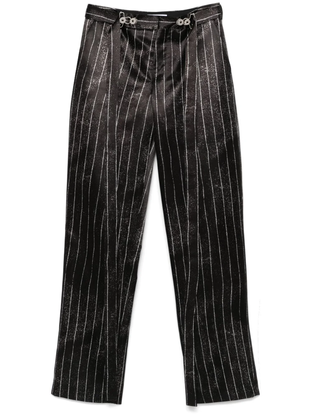 striped trousers Highlights - Black - Concealed front fastening - Adjustable waist strap - Two side slash pockets - Two rear welt pockets Made in Italy Composition Lining: Viscose 100% Outer: Acetate 100% SIZE & FIT Model measurements Height 5 ft 11 in(1.8 m) Bust/Chest 31.49 in(80 cm) Hips 35.82 in(91 cm) Waist 24.8 in(63 cm) FittingInformation Designed for a tapered fit, these trousers allow for a close fit at the waist and a loose unrestricted fit over the leg with a closer fit towards the ankle Made from a midweight non-stretch fabric Washing instructions Dry Clean Only