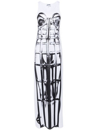 The Cage long dress Highlights - White/black - Stretch-jersey - Trompe l'oeil cage print - Crew neck - Sleeveless - Straight hem - Long length - Unlined Imported Composition Polyester 87%, Elastane 13% SIZE & FIT Measurement HIPS 32 in(81.3 cm) LENGTH 59.01 in(149.9 cm) WAIST 27.99 in(71.1 cm) BUST 27.99 in(71.1 cm) Washing instructions Machine Wash