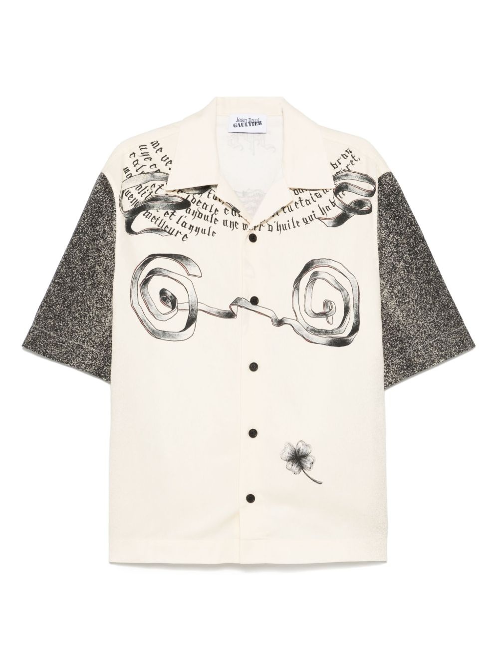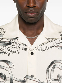The Multi-Tattoo shirt Highlights - Light beige - Front button fastening - Short sleeves - All-over graphic print - Camp collar Imported Composition Cotton 100% SIZE & FIT Model measurements Height 6 ft 0 in(1.84 m) Bust/Chest 35.82 in(91 cm) Hips 37 in(94 cm) Waist 28.34 in(72 cm) Measurement CHEST 50.39 in(128 cm) SLEEVE LENGTH 11.81 in(30 cm) LENGTH 30.31 in(77 cm) WAIST 48.81 in(124 cm) Shoulder Width 20.47 in(52 cm) FittingInformation This piece is unisex – if you usually select men's sizing expect a loose fit throughout; if you usually select women's sizes, expect an oversized fit Made from a midweight non-stretch fabric Washing instructions Machine Wash