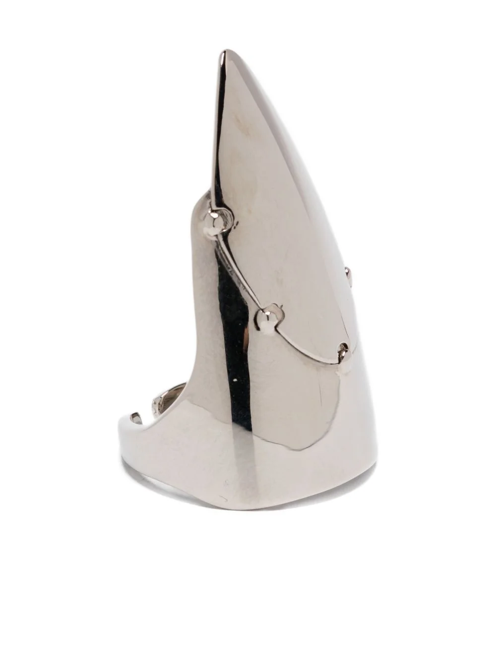 The Nail ring Highlights - Silver-tone - Pointed - Open band Imported SIZE & FIT Model measurements Height 5 ft 10 in(1.79 m) Bust/Chest 31.88 in(81 cm) Hips 35.43 in(90 cm) Waist 23.62 in(60 cm) Measurement Band Width 0.11 in(0.3 cm) CIRCUMFERENCE 2.12 in(5.4 cm) Feature Length 1.37 in(3.5 cm) Feature Width 0.7 in(1.8 cm)