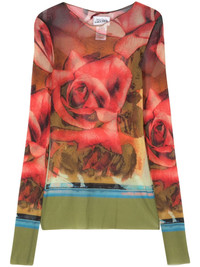 The Red Roses mesh top Highlights - Green/multicolour - Mesh design - Semi-sheer construction - Red roses print - Raw-cut edge - Round neck - Long sleeves - Straight hem - Unlined Made in Italy Composition Polyamide 100% SIZE & FIT Measurement BUST 22.04 in(56 cm) LENGTH 24.01 in(61 cm) SLEEVE LENGTH 25.19 in(64 cm) Shoulder Width 10.23 in(26 cm) Washing instructions Hand Wash