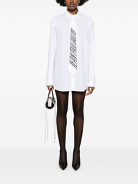 tie-detailed shirt Highlights - White - Cotton - Poplin texture - Logo-print at the detachable tie - Locker loop - Inverted pleat - Classic collar - Front button fastening - Long sleeves - Buttoned cuffs - High-low hem Made in Italy Composition Cotton 100% SIZE & FIT Model measurements Height 5 ft 10 in(1.77 m) Bust/Chest 34.64 in(88 cm) Hips 35.43 in(90 cm) Waist 24.8 in(63 cm) FittingInformation Designed to be unstructured, offering a loose fit throughout Made from a midweight non-stretch fabric This piece fits true to size – take your usual size Washing instructions Machine Wash