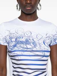 trompe l'oeil-print T-shirt Highlights - Blue/white - Stretch-design - Technical jersey - Trompe l'oeil print - Logo print to the front - Horizontal stripe print - Crew neck - Short sleeves - Straight hem Imported Composition Polyester 87%, Elastane 13% SIZE & FIT Model measurements Height 5 ft 10 in(1.77 m) Bust/Chest 32.28 in(82 cm) Hips 35.03 in(89 cm) Waist 25.19 in(64 cm) Measurement SLEEVE LENGTH 5.9 in(15 cm) LENGTH 22.44 in(57 cm) BUST 29.92 in(76 cm) Shoulder Width 12.59 in(32 cm) FittingInformation Designed for a slim fit that sits just away from the body offering a close yet comfortable fit Made from a midweight stretch fabric, this piece offers elasticity and flexibility when worn This piece fits true to size – take your usual size Washing instructions Machine Wash