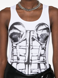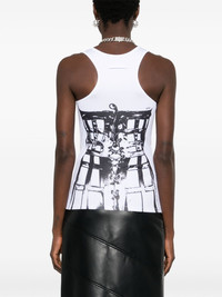 trompe l'oeil print top Highlights - White/black - Stretch-design - Trompe l'oeil print - Round neck - Sleeveless - Straight hem Imported Composition Polyester 87%, Elastane 13% SIZE & FIT Model measurements Height 5 ft 11 in(1.8 m) Bust/Chest 32.67 in(83 cm) Hips 36.22 in(92 cm) Waist 24.4 in(62 cm) Measurement LENGTH 20.86 in(53 cm) BUST 26.77 in(68 cm) FittingInformation Designed for a close fit throughout Made from a midweight stretch fabric, this piece offers elasticity and flexibility when worn This piece fits true to size – take your usual size Washing instructions Machine Wash