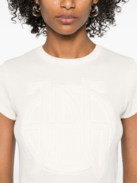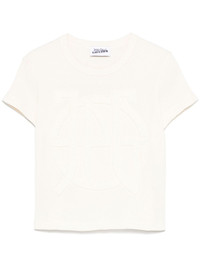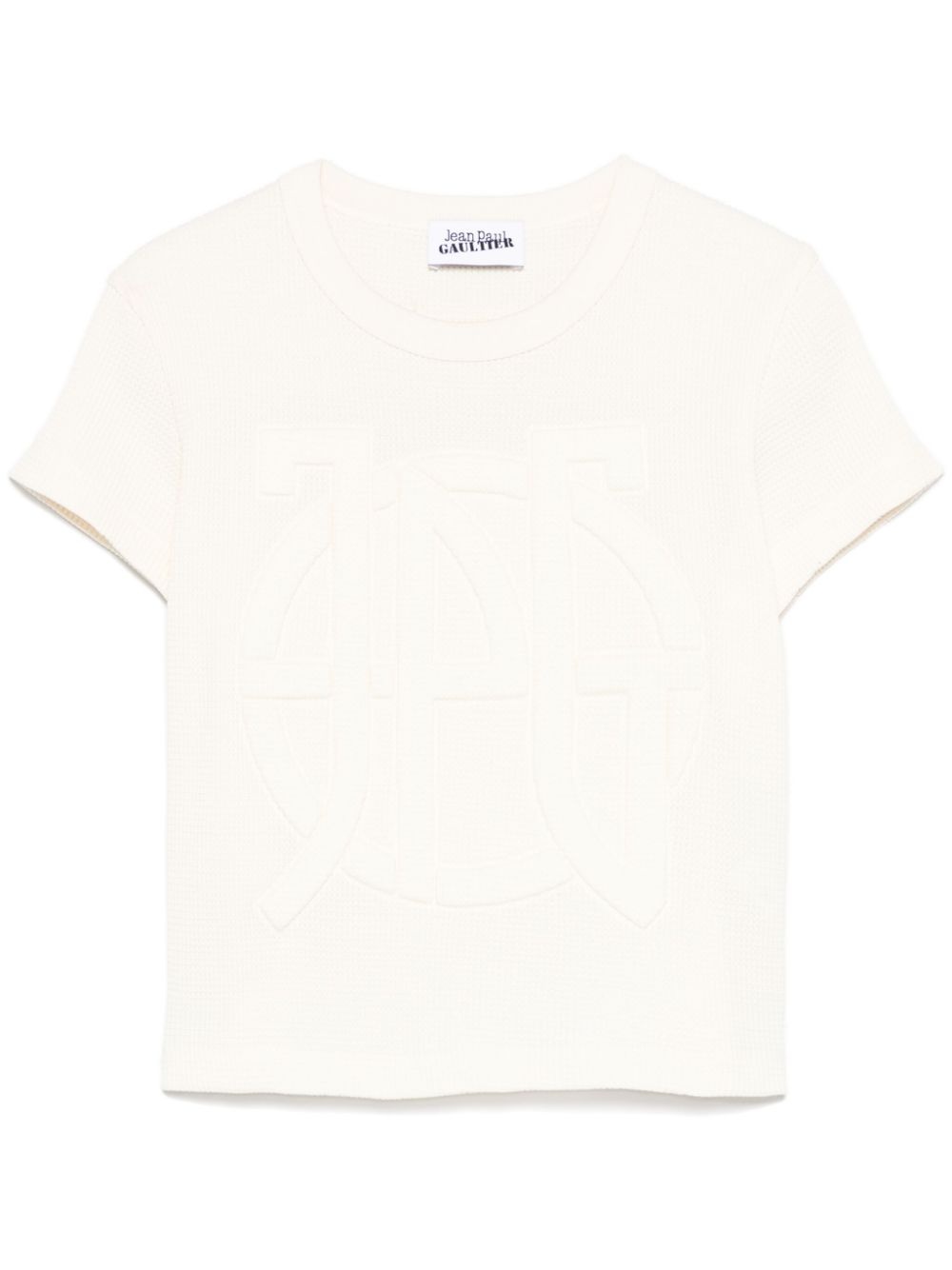 waffle logo-embossed T-shirt Highlights - Light beige - Crew neck - Short sleeves - Cropped Imported Composition Cotton 100% SIZE & FIT Model measurements Height 5 ft 11 in(1.8 m) Bust/Chest 31.49 in(80 cm) Hips 35.82 in(91 cm) Waist 24.8 in(63 cm) FittingInformation Designed for a slim fit that sits just away from the body offering a close yet comfortable fit Made from a midweight non-stretch fabric, this piece offers minimal elasticity when worn