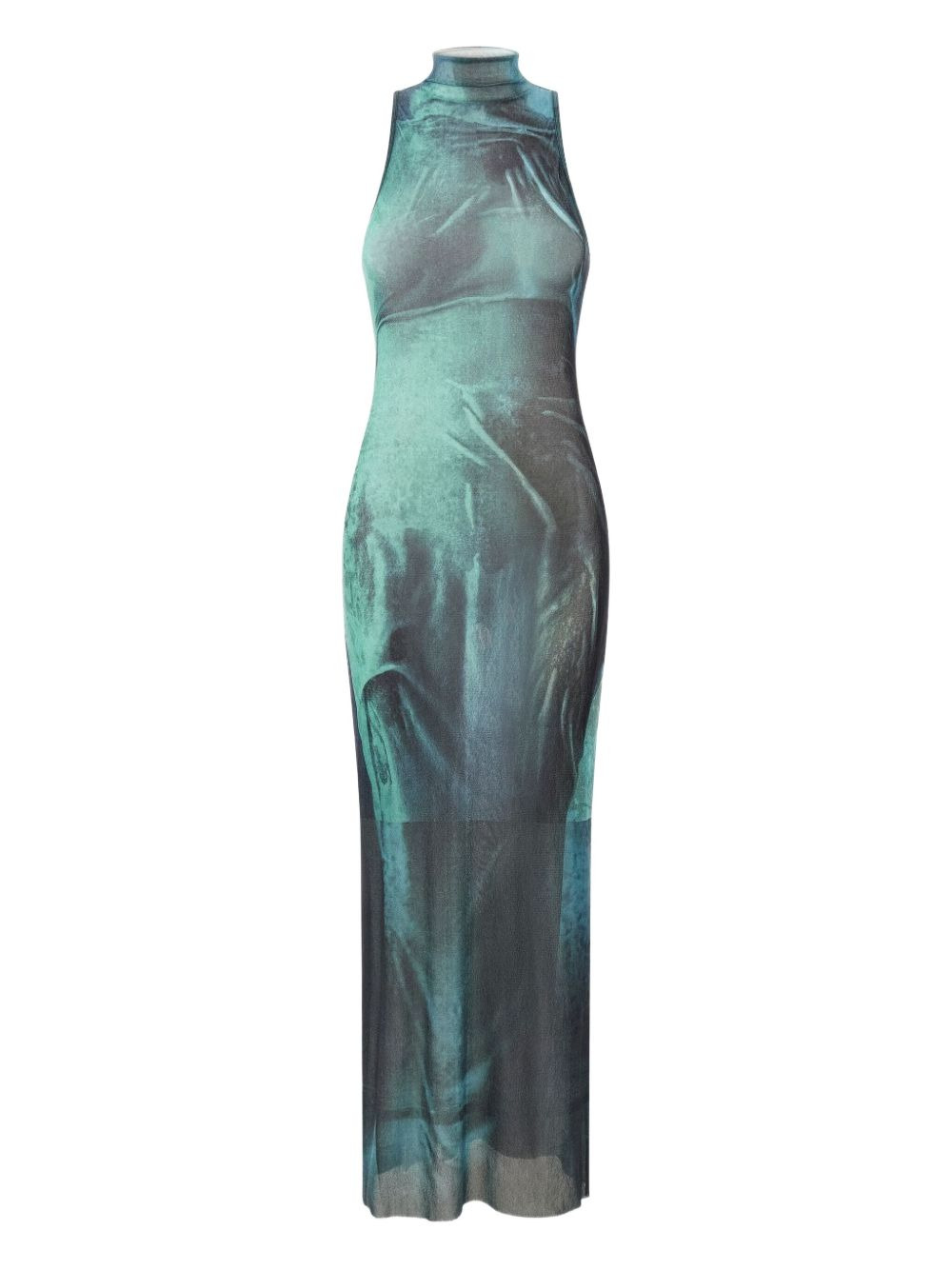 Water high-neck dress Highlights - Green - Abstract print - Sleeveless - Maxi length - Close-fitting Made in Italy Composition Outer: Polyamide 100% Lining: Polyamide 100% Washing instructions Read Manufacturer Guidelines
