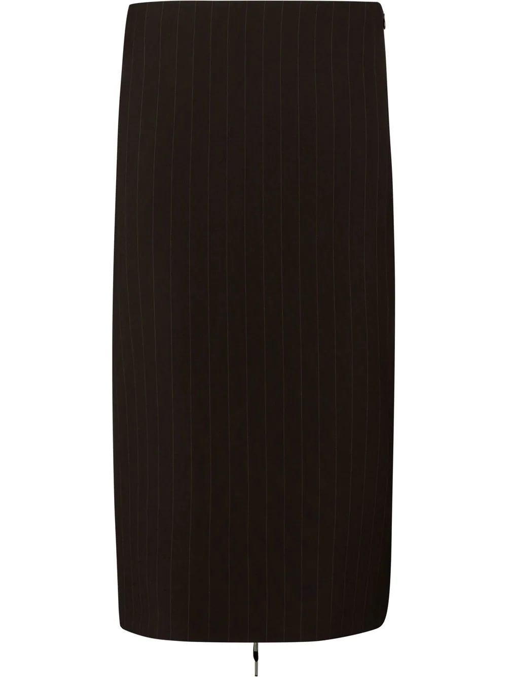 x Lotta Volkova lace-up skirt Jean-Paul Gaultier joins stylist Lotta Volkova for AW22 and creates a capsule collection full of bold silhouettes and refined details. Made from wool in Italy, this dark brown skirt is cut for a pencil shape and adorned with a timeless pinstripe pattern. Made in Italy Composition Wool 100% SIZE & FIT Model measurements Height 5 ft 11 in(1.8 m) Bust/Chest 33.85 in(86 cm) Hips 37 in(94 cm) Waist 25.59 in(65 cm) Measurement HIPS 37 in(94 cm) LENGTH 27.55 in(70 cm) WAIST 29.92 in(76 cm) FittingInformation This piece fits true to size. We recommend you get your regular size Cut for a slim fit Made with a mid-weight non-stretch fabric Washing instructions Dry Clean Only