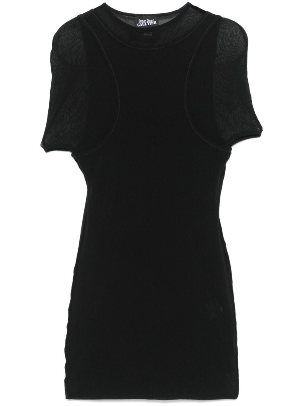 x Shayne Oliver The Double mini dress Highlights - Black - Mesh design - Double layer - Inside-out effect seams - Crew neck - Short sleeves - Unlined - Straight hem - Thigh-length Made In Italy Composition Polyamide 100% SIZE & FIT Model measurements Height 5 ft 10 in(1.78 m) Bust/Chest 33.46 in(85 cm) Hips 36.22 in(92 cm) Waist 23.22 in(59 cm) FittingInformation Designed for a close fit throughout Made from a midweight non-stretch fabric, this piece offers minimal elasticity when worn