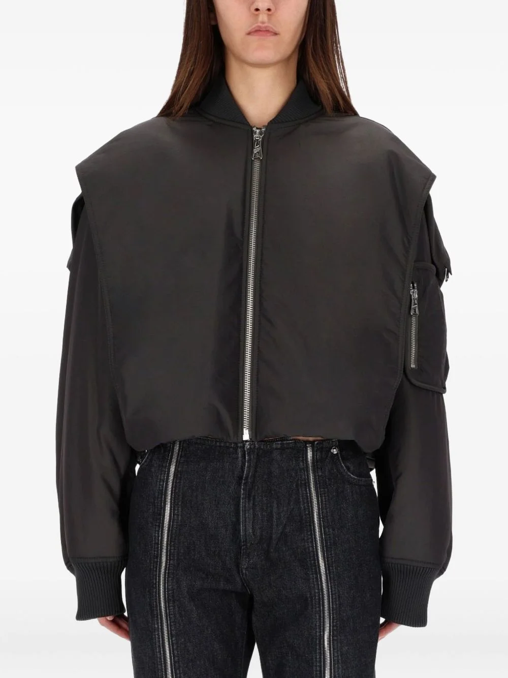 zip-fastening bomber jacket Highlights - Grey - Zip fastening - Ribbed trims - Zip pocket - Shoulder detail - Long sleeves Made in Italy Composition Polyamide 52%, Polyester 48% Washing instructions Read Manufacturer Guidelines