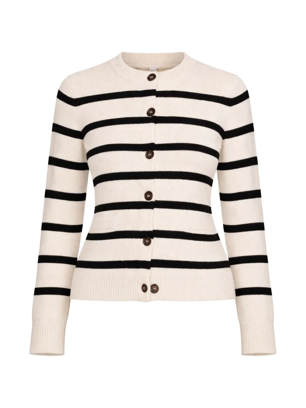 Cooper cardigan Highlights - Cream/black - Striped pattern - Button fastening - Crew neck - Long sleeves - Ribbed trim Imported Composition Wool 70%, Cashmere 30% Washing instructions Dry Clean Only