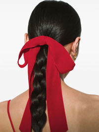 Adley bow barrette Highlights - Red - Silk velvet - Bow detailing - Adjustable fit - Pull-on style Made in United States Composition Steel 50%, Silk Velvet 50% SIZE & FIT Measurement LENGTH 11 in(27.9 cm) WIDTH 9 in(22.8 cm)