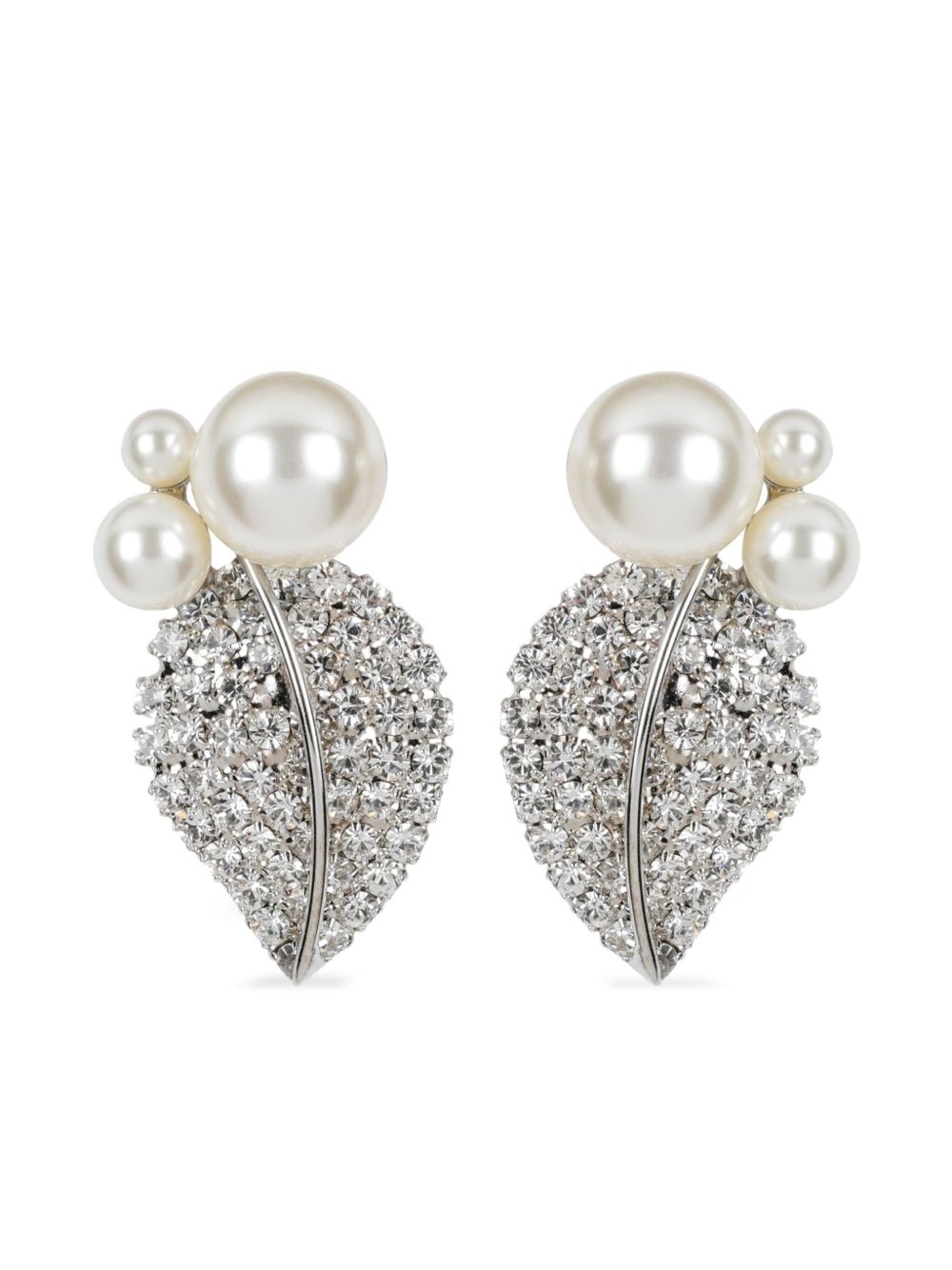 Blanca earrings Highlights - Silver - Rhodium-plated metal - Leaf-shape - Pave-set crystals - Pearl embellishments - Post-back fastening - For pierced ears - These earrings come as a pair. Imported