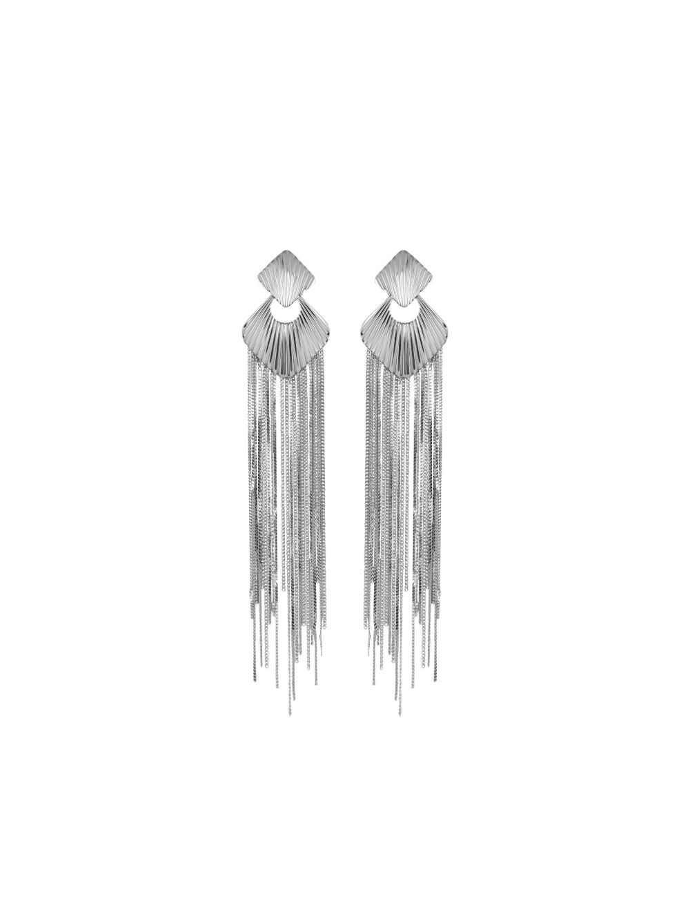 Blythe fringed earrings Highlights - Silver - Chain fringe - Ridged detail - Drop style - For pierced ears - These earrings come as a pair. Imported