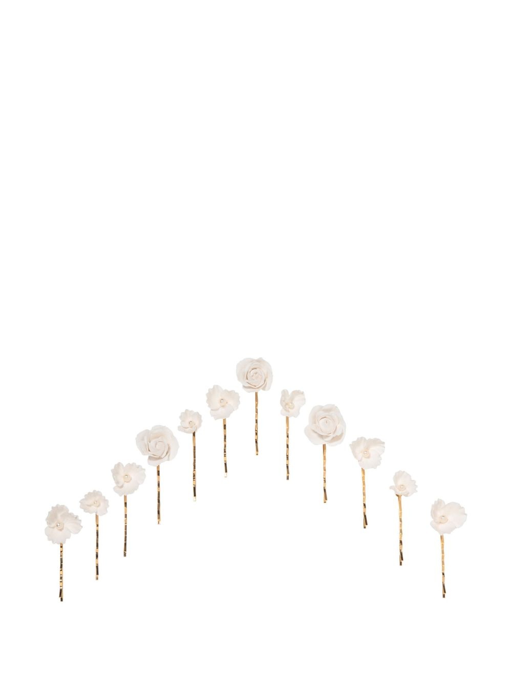 Cameryn bobby pin set Highlights - White - Floral motif - Adjustable fit - This piece comes complete with a protective dust bag. Imported Composition Clay 50%, 18k Gold Plated Rhodium 50%