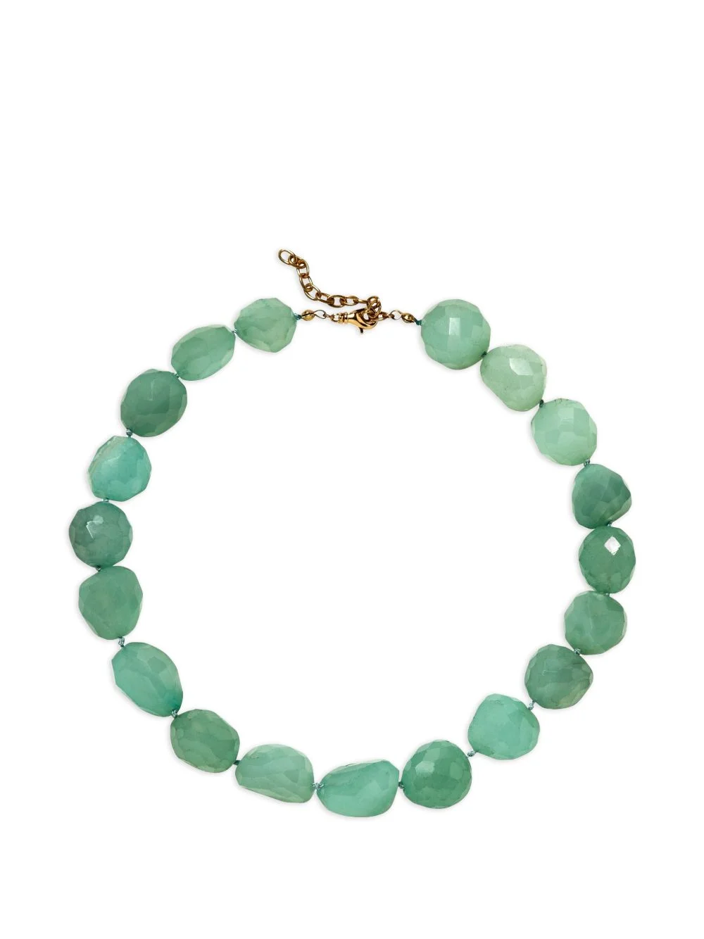 chalcedony beaded necklace Highlights - Green - Beaded - Gold plated chain - Lobster-clasp fastening - Normal everyday use and external agents may reduce the lustre of gemstones and gold surfaces. to maintain, use specific, non-abrasive products specially meant for cleaning jewellery. Imported
