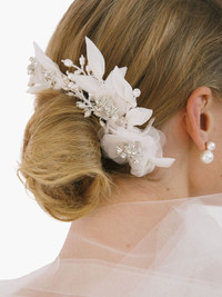 Chantrell comb Highlights - White - Synthetic crystal embellishment - Floral applique Imported Composition Synthetic Crystal 100%, Silk 100%