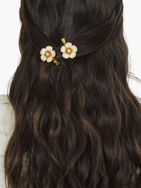 Debbie hair clips (set of two) Highlights - Ecru - Floral motif - Crystal embellishment - Set of two Imported Composition 18kt Gold Plated Steel 95%, Synthetic Crystal 5%