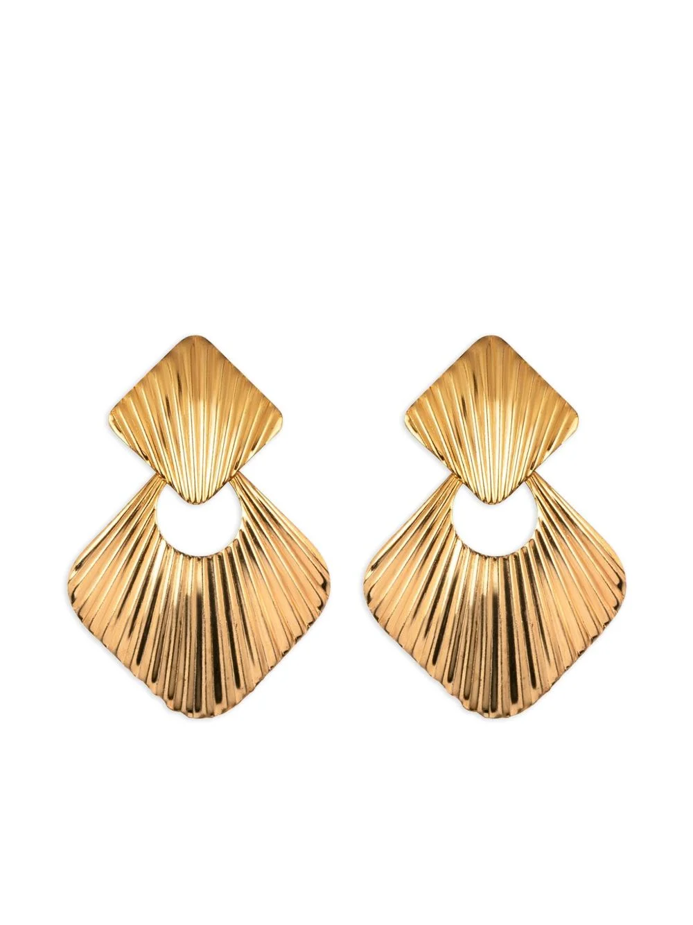 Demetra earrings Highlights - Gold - Ridged design - Drop style - Open detail - Post-back fastening - These earrings come as a pair. - Normal everyday use and external agents may reduce the lustre of gemstones and gold surfaces. to maintain, use specific, non-abrasive products specially meant for cleaning jewellery. Imported