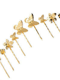 Farasha Bobby pin set Highlights - Gold-tone - 18kt gold plated - Polished finish - Floral applique Imported Composition 18kt Gold Plated Brass 100%