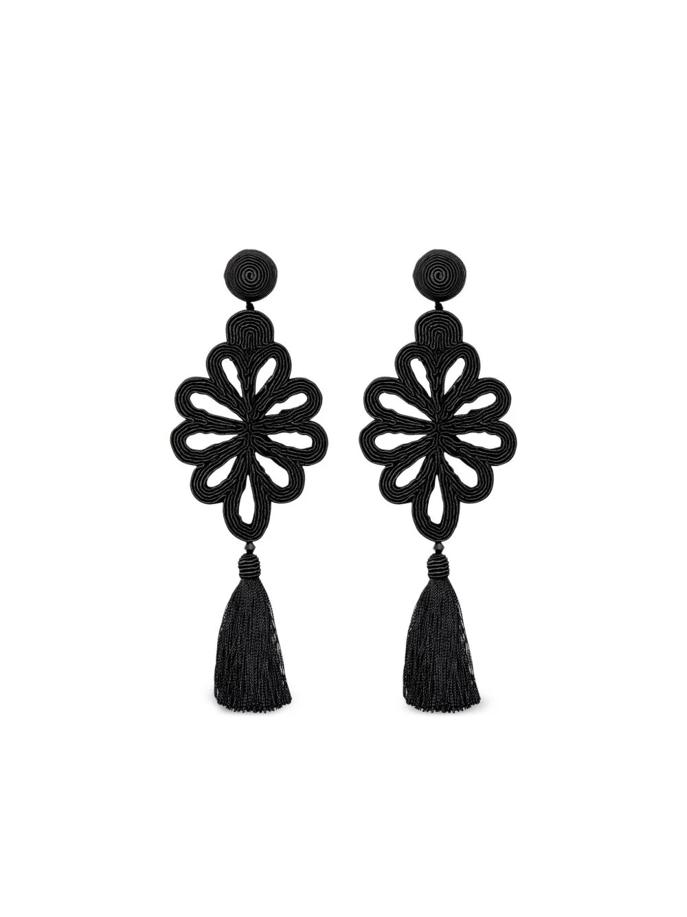 floral tassel esperanza earrings Highlights - Black - Floral design - Tassel detail - Rhodium plated - Round stud - Spiral detail Imported