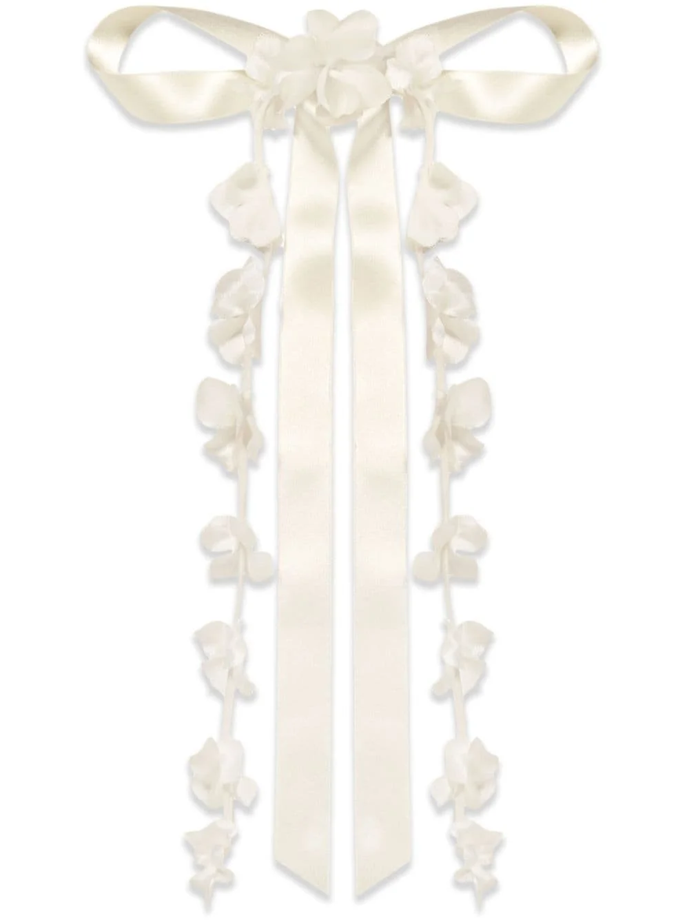 Juliet Bow hair pin Highlights - Cream white - Silk/steek - Satin finish - Bow detailing - Floral applique - French barrette fastening Made in United States Composition Silk 100%, Steel 100%