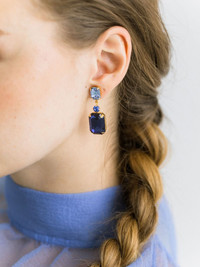 Justine rectangle earrings Highlights - Sapphire blue - 18kt gold plated - Crystal embellishment - Rectangle frame - Press-stud fastening Made in United States