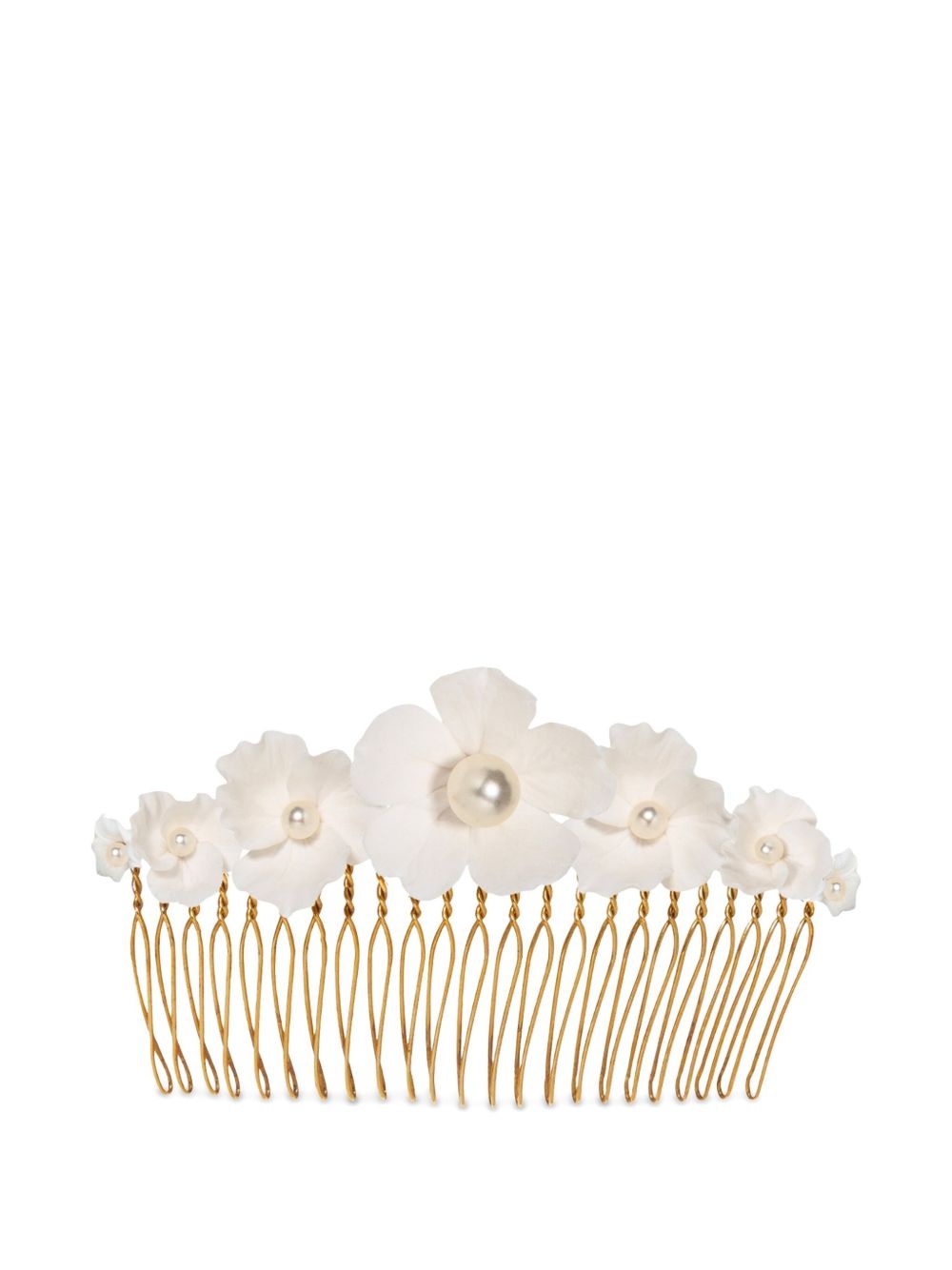 Karissa comb Highlights - White - Floral applique - Pearl detail - Comb Imported Composition 18k Gold Plated Rhodium 100%, Clay 100%