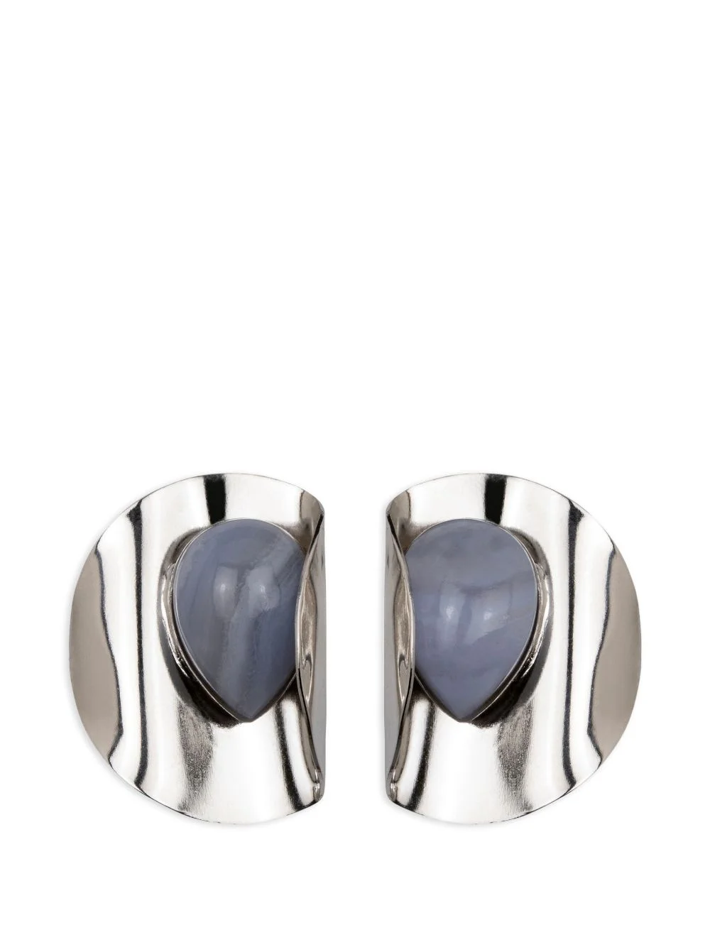 Keziah agate earrings Highlights - Silver and blue - Curved design - Polished finish - Normal everyday use and external agents may reduce the lustre of gemstones and gold surfaces. to maintain, use specific, non-abrasive products specially meant for cleaning jewellery. - These earrings come as a pair. Imported
