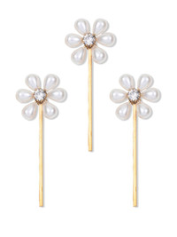 Laena bobby pins (set of three) Highlights - White - Pearl detailing - Pin fastening Imported Composition Swarovski Crystal Pearl 100%, 18k Gold Plated Rhodium 100%