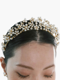 Laena tiara Highlights - Gold-tone - Pearl detailing - Slip-on style Imported Composition Swarovski Crystal Pearl 100%, 18k Gold Plated Rhodium 100%