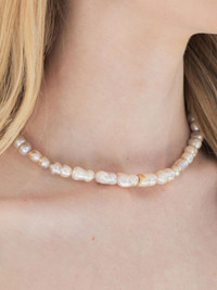 Lilah necklace Highlights - Light beige - T-bar fastening - Pearls should be the last thing that you put on in the morning and the first thing you take off at night. avoid contact with perfumes or creams, and simply wipe with a soft cloth to clean. - Normal everyday use and external agents may reduce the lustre of gemstones and gold surfaces. to maintain, use specific, non-abrasive products specially meant for cleaning jewellery. Imported
