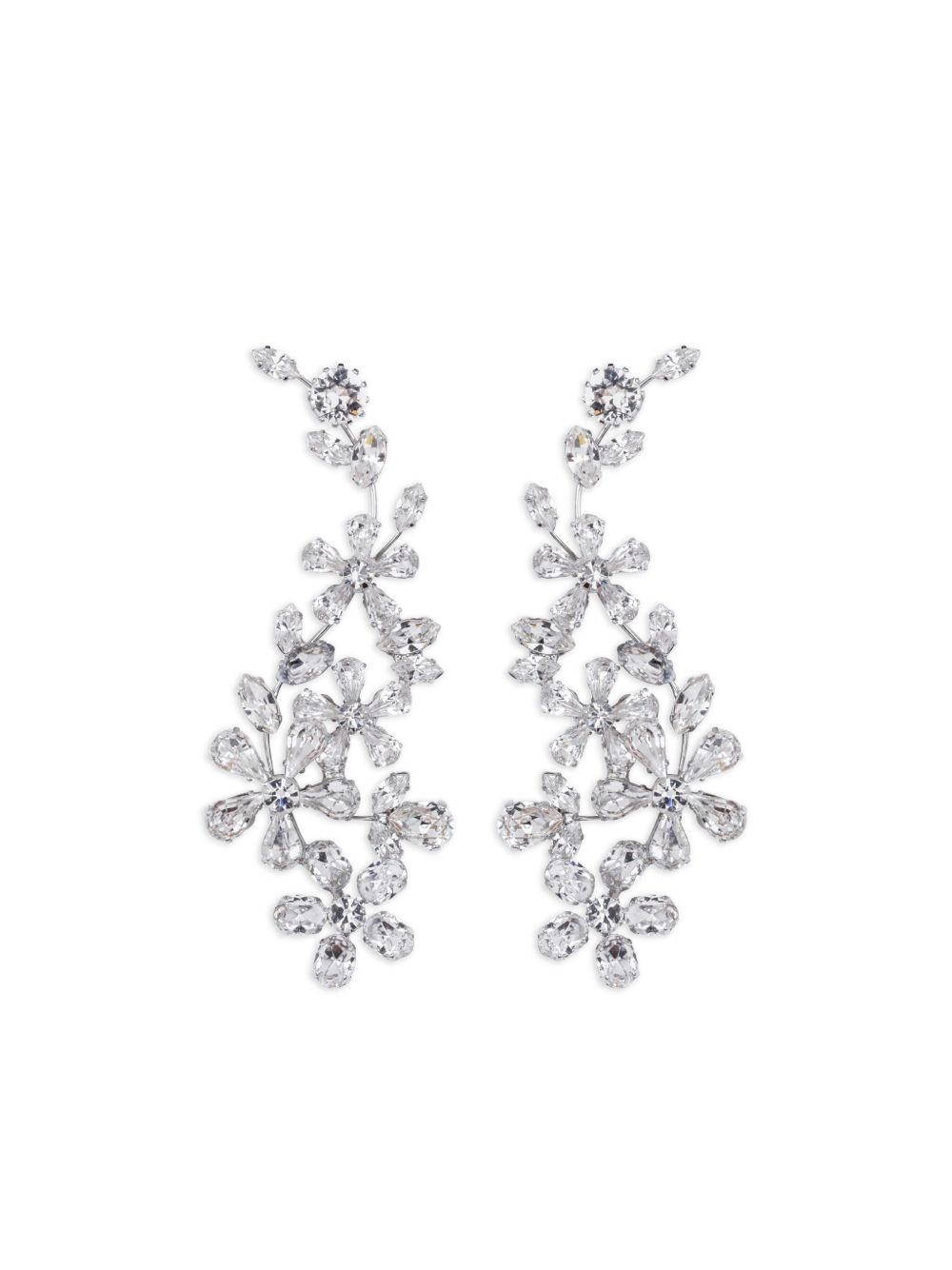 Mirella earrings Highlights - Silver - Rhodium plated metal - Flower embellishment - Crystal detail - Ear climber design - For pierced ears - These earrings come as a pair. Imported