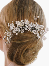 Nicola comb Highlights - White - Floral applique - Swarovski crystal embellishment Imported Composition Steel 100%, Swarovski Crystal Pearl 100%