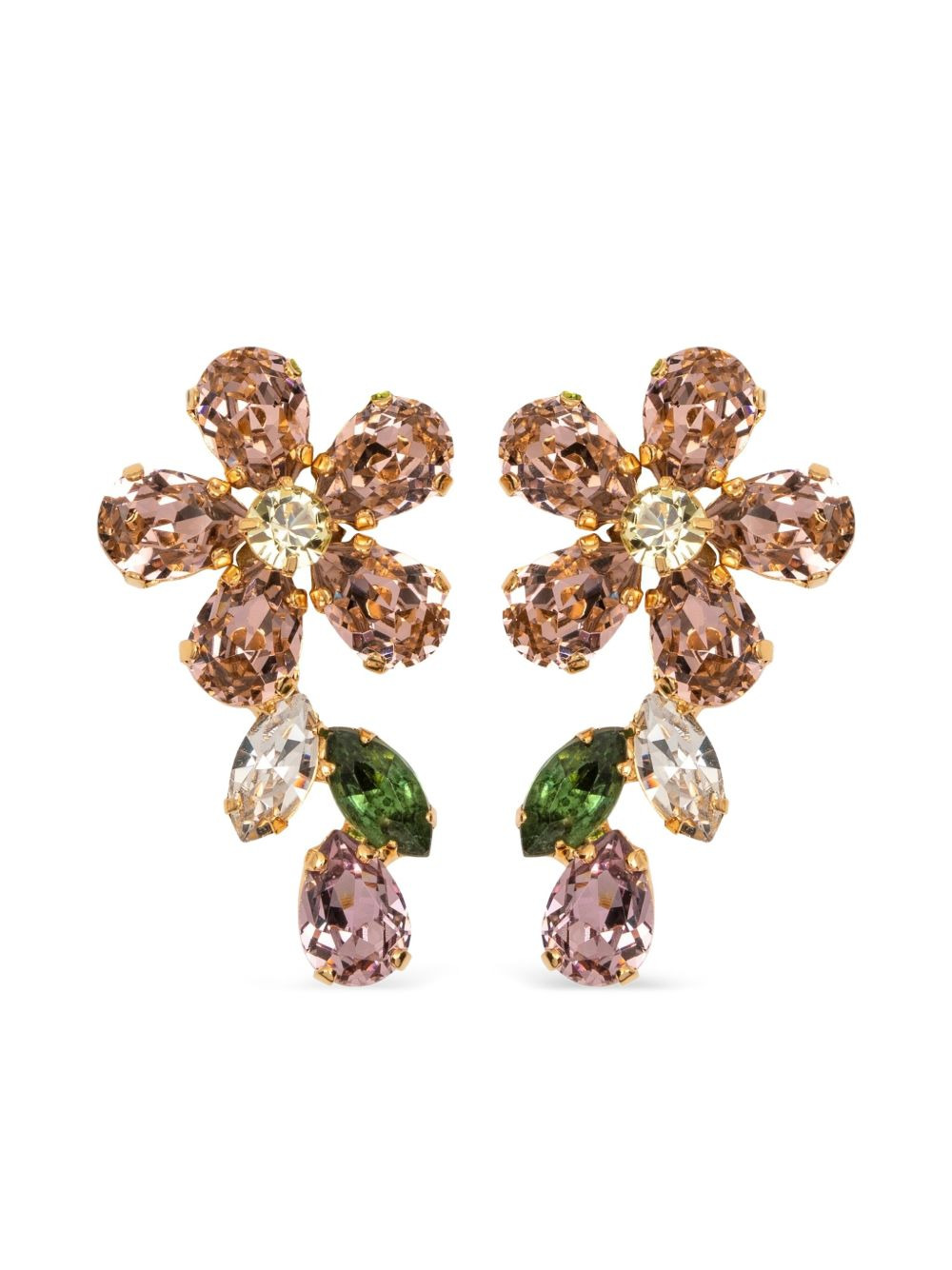Odelia flower earrings Highlights - Gold - 18kt gold plated - Flower embellishment - Drop design - Stone embellishment - These earrings come as a pair. - Normal everyday use and external agents may reduce the lustre of gemstones and gold surfaces. to maintain, use specific, non-abrasive products specially meant for cleaning jewellery. Imported