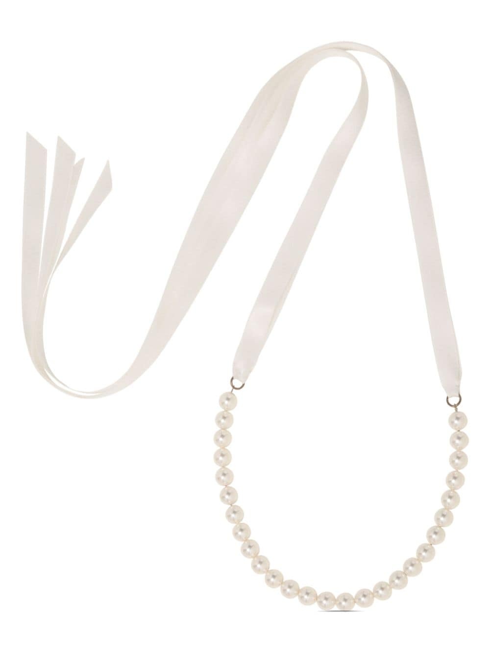 pearl-embellished ribbon tie necklace Highlights - White - Silk - Ribbon tie fastening - Pearl embellishment - Pearls should be the last thing that you put on in the morning and the first thing you take off at night. avoid contact with perfumes or creams, and simply wipe with a soft cloth to clean. Made in United States