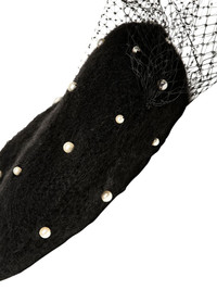 pearl-embellished voilette beret Highlights - Black - Alpaca wool - Knitted construction - Pearl detailing - Veil detail Imported Composition Nylon 100%, Alpaca Wool 100%, Pearls 100%