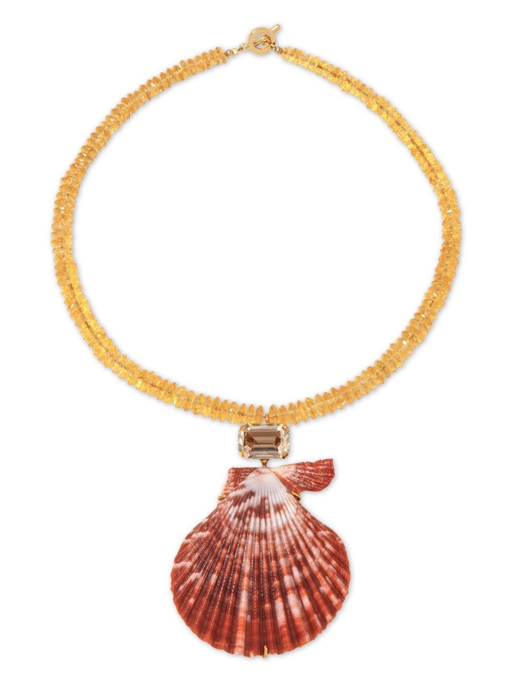 Roma shell necklace Highlights - Yellow - Charm detail - T-bar fastening - Shell pendant Imported