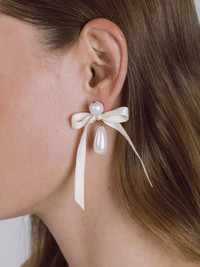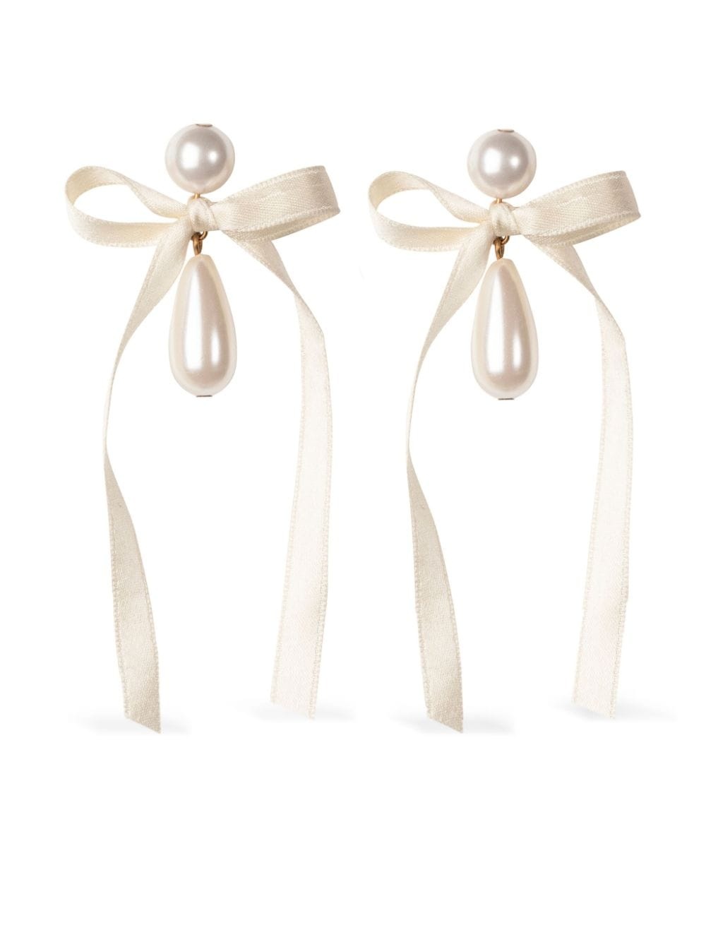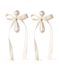 Sylvie bow-detail earrings Highlights - Cream white/gold-tone - Brass - 18kt gold plated - Drop design - Faux-pearl detailing - Silk bow detailing - Post-back fastening - For pierced ears - These earrings come as a pair. Imported