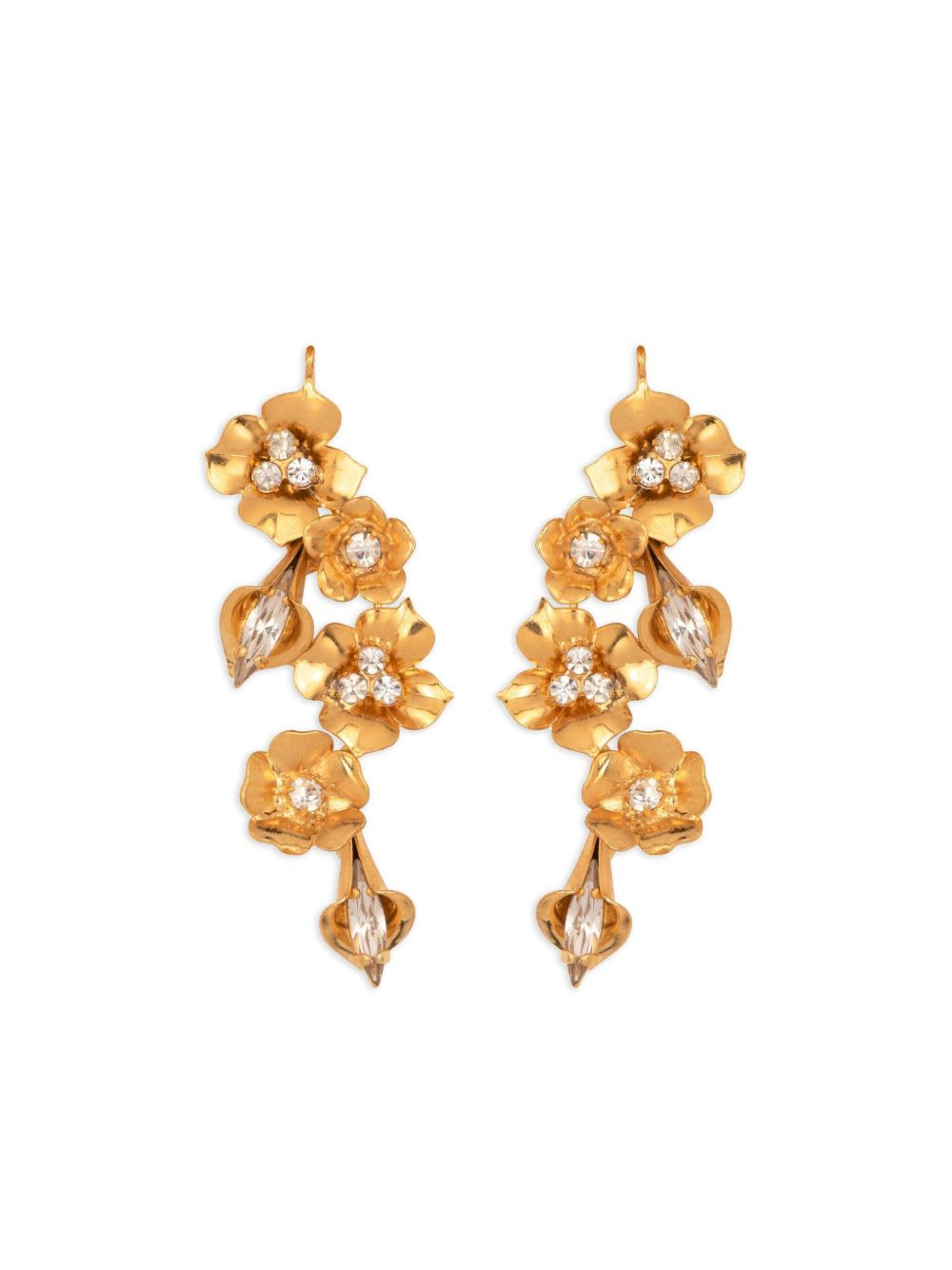 Vanora floral crystal earrings Highlights - Gold - Flower design - Crystal embellishment - Drop design - Normal everyday use and external agents may reduce the lustre of gemstones and gold surfaces. to maintain, use specific, non-abrasive products specially meant for cleaning jewellery. - These earrings come as a pair. Made in United States SIZE & FIT Measurement HEIGHT 2.63 in(6.7 cm) WIDTH 0.62 in(1.6 cm)