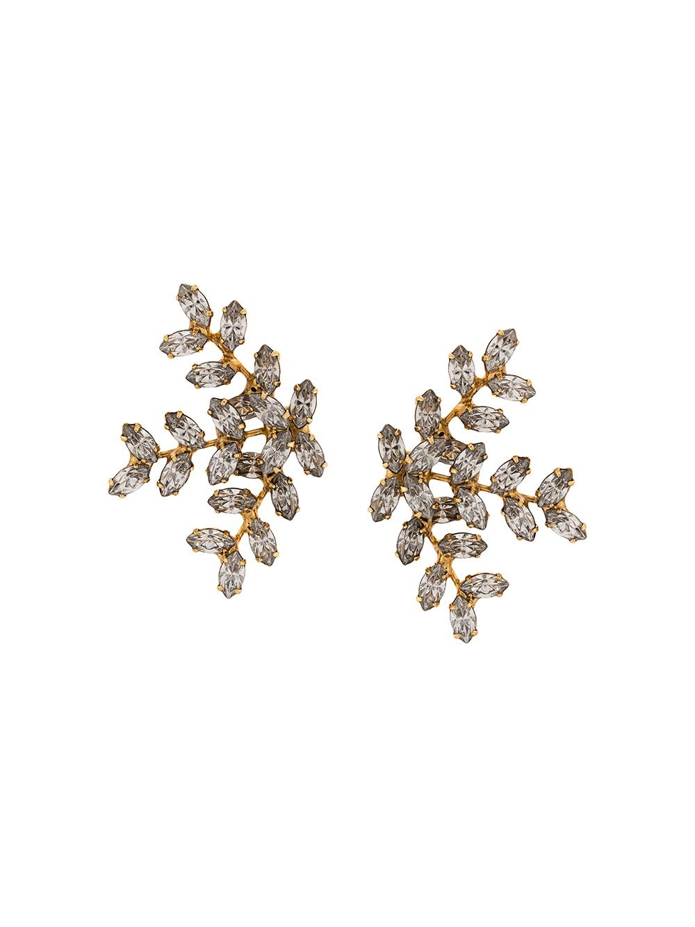 Vinette leaf earrings Gold-tone and silver-tone crystal Vinette leaf earrings from Jennifer Behr featuring crystal embellishments and a butterfly fastening. These earrings come as a pair. Made in United States SIZE & FIT Measurement HEIGHT 1.49 in(3.8 cm) Weight (single earring) 3 g(3 g) WIDTH 0.98 in(2.5 cm)