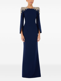 Adeline maxi dress Highlights - Dark blue - Rhinestone embellishment - Split cuffs - Floor-length - Concealed rear zip fastening - Round neck Imported Composition Polyester 92%, Polyurethane 8% Washing instructions Dry Clean Only
