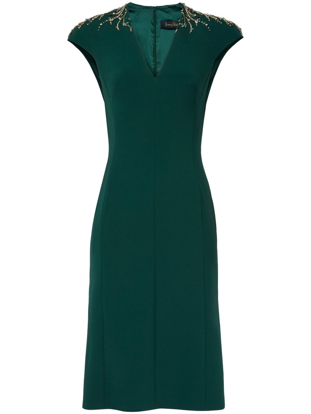 Ardila crystal-embellished midi dress Highlights - Green - Crystal embellishment - Rear zip fastening - V-neck - Short sleeves - Straight hem Imported Composition Polyester 100% Washing instructions Dry Clean Only