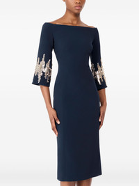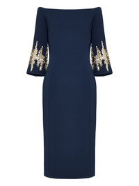 Aster sequin-embellished midi dress Highlights - Dark blue - Boat neck - Three-quarter sleeves - Sequin embellishment - Back hidden zip-fastening - This piece features very delicate detailing. handle with extreme care to avoid damage such as broken feathers or loss of sequins. Imported Composition Polyester 92%, Polyurethane 8% Washing instructions Read Manufacturer Guidelines