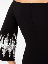 Aster sequin-embellished midi dress Highlights - Black - Off-shoulder neckline - Three-quarter sleeves - Sequin embellishment - Fitted bodice - Midi length - This piece features very delicate detailing. handle with extreme care to avoid damage such as broken feathers or loss of sequins. Imported Composition Polyester 92%, Polyurethane 8% Washing instructions Read Manufacturer Guidelines