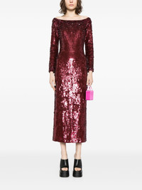 Ballroom Blitz sequin-embellished dress Highlights - Dark red - Sequin embellishment - Boat neck - Side zip fastening - Three-quarter length sleeves - Straight hem - Mid-length Imported Composition Polyester 100% Washing instructions Dry Clean Only