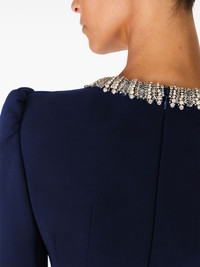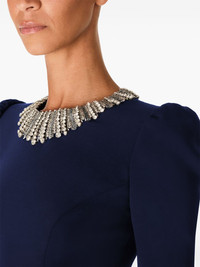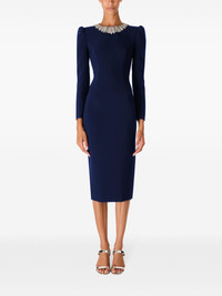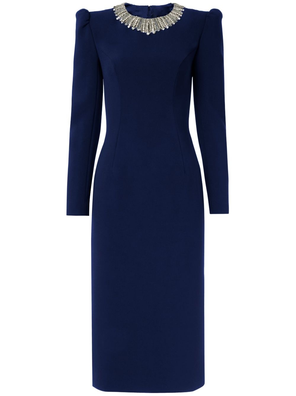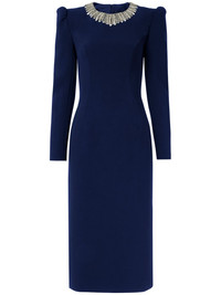 Cora dress Highlights - Navy blue - Crepe texture - Concealed rear zip fastening - Crew neck - Crystal embellishment - Long sleeves - Rear slit - Mid-length Imported Composition Viscose Crepe 100% Washing instructions Dry Clean Only