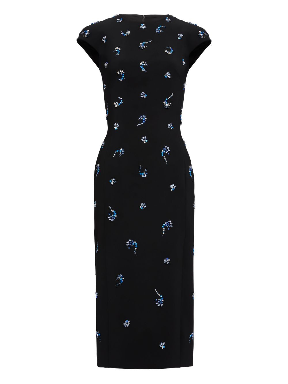 embellished cap-sleeve midi dress Highlights - Black - Crystal embellishment - Cap sleeves - Round neck - Midi length - Fitted silhouette Imported Composition Polyester 92%, Polyurethane 8% Washing instructions Dry Clean Only